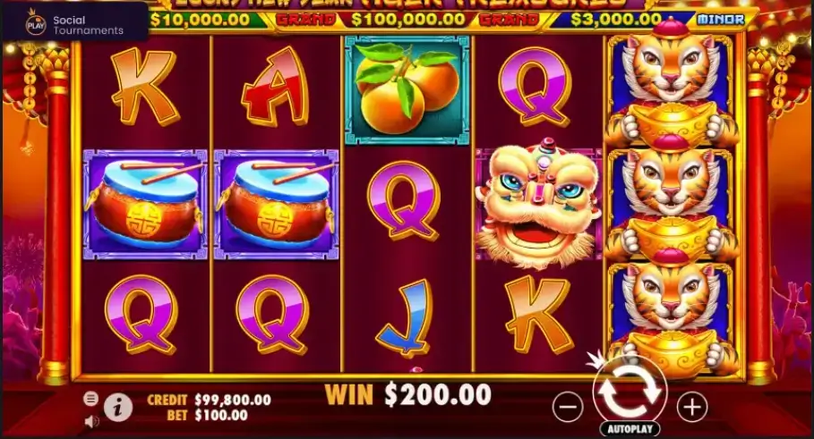 《舞狮送财》的符号设计紧扣“送财纳福”的主题内涵。狮头、锣鼓、铜钱、红包等元素依次登场,每一种图案都蕴含着明确的文化象征意义。高价值符号在造型与色彩上更加醒目,细节刻画丰富;基础符号则保持简洁清晰,整体排列有序,方便玩家在体验过程中快速理解画面信息。
